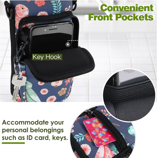 Water Bottle Carrier Bag,25Oz/40Oz/64Oz Bottle Pouch Holder,Adjustable Shoulder Hand Strap 2 Pocket Sling Neoprene Sleeve Sports Accessories for Hiking Travelling Camping
